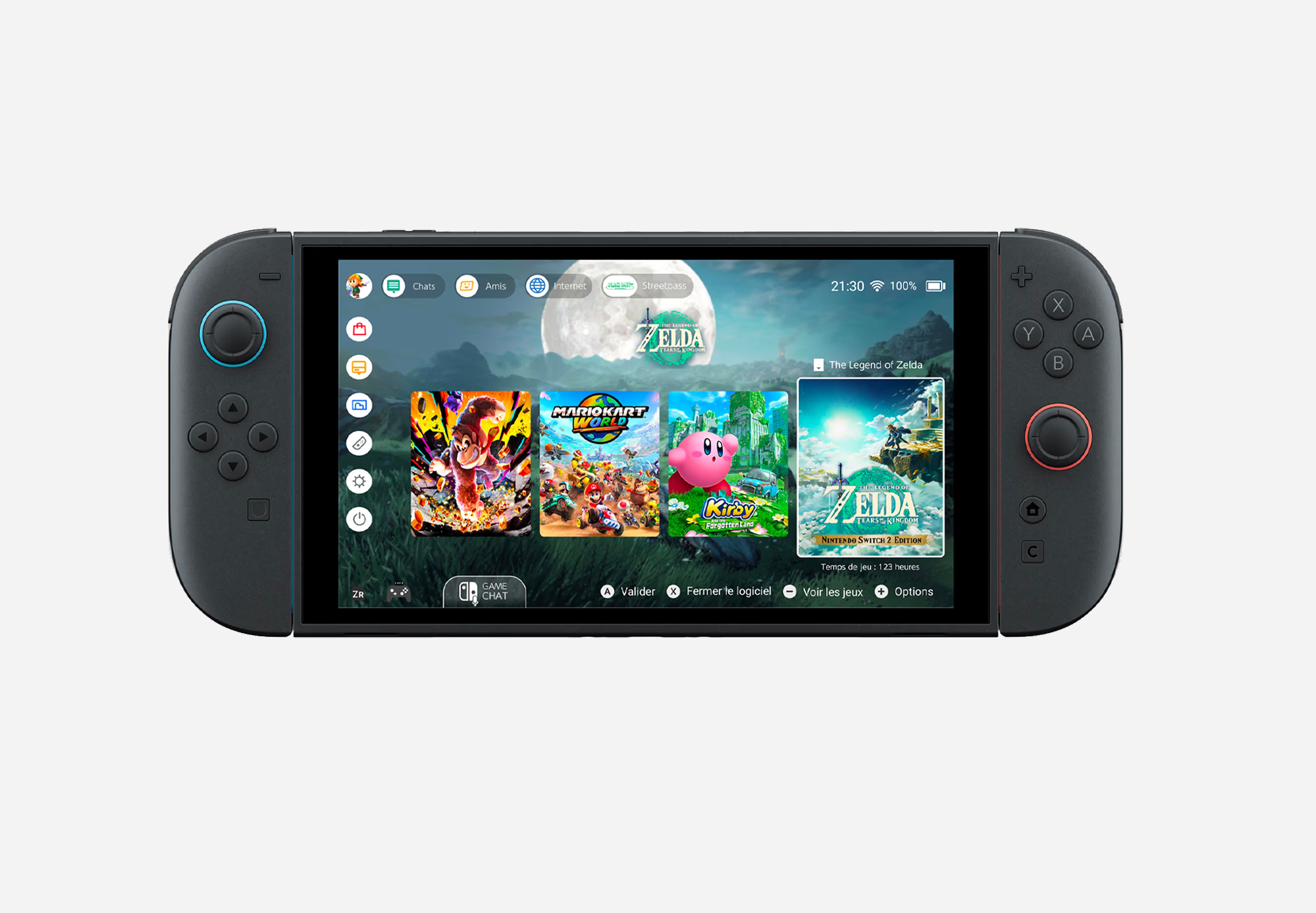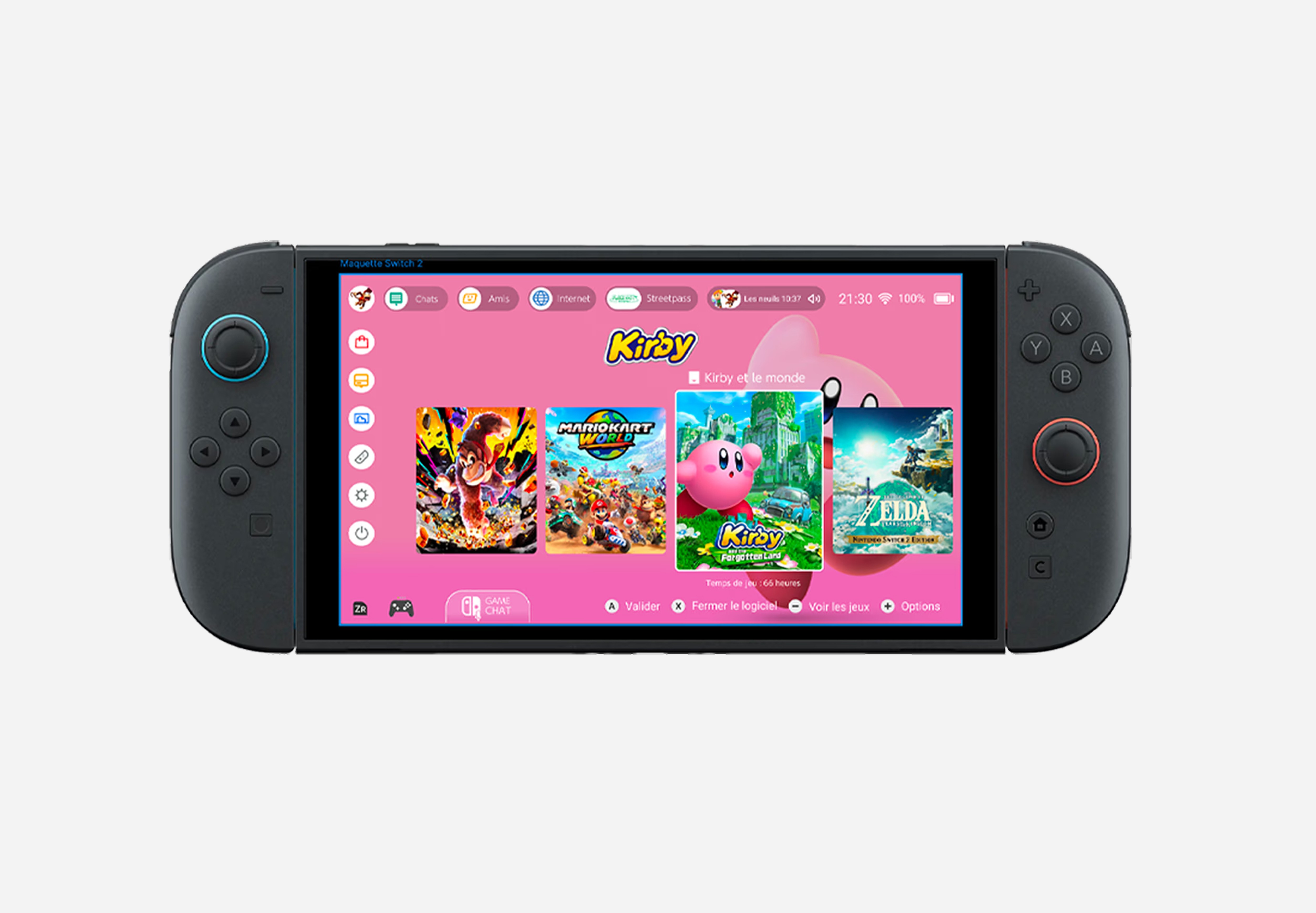 Dans le cadre de ce projet, j’ai imaginé et conçu une version anticipée de la future Nintendo Switch 2, en me basant sur les tendances du marché, les attentes des joueurs et les évolutions technologiques probables. L’objectif était de proposer une vision crédible et innovante de la console, tout en y intégrant une fonctionnalité clé : le GameChat. Ce système de communication, pensé comme une extension naturelle de l’expérience multijoueur, permet aux utilisateurs d’échanger facilement en jeu, sans compromettre la simplicité et l’accessibilité propres à l’écosystème Nintendo. Ce concept design s’inscrit dans une démarche prospective, mêlant analyse, créativité et compréhension des usages.